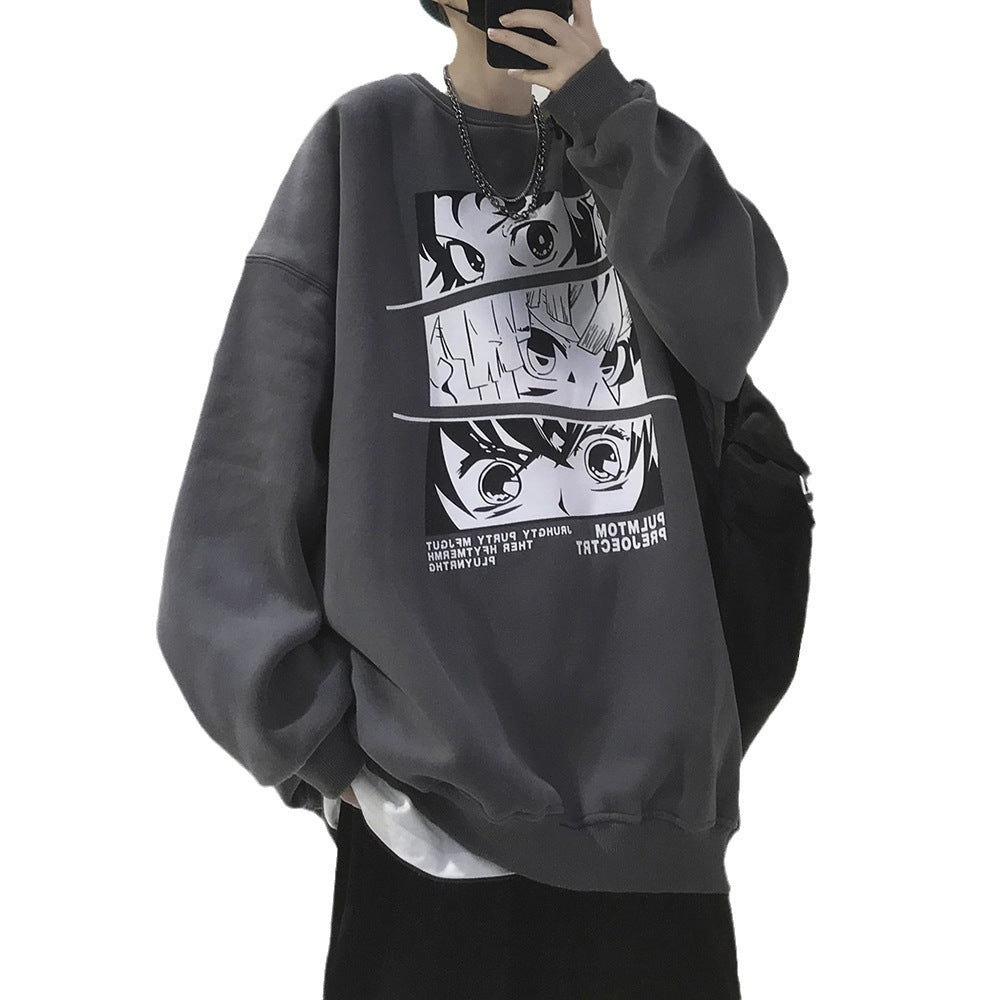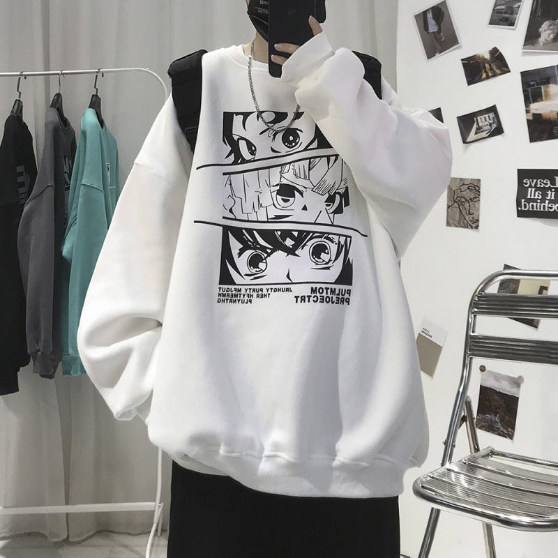 Men’s Velvet Round Neck Sweatshirt – Korean Style Ins Trend