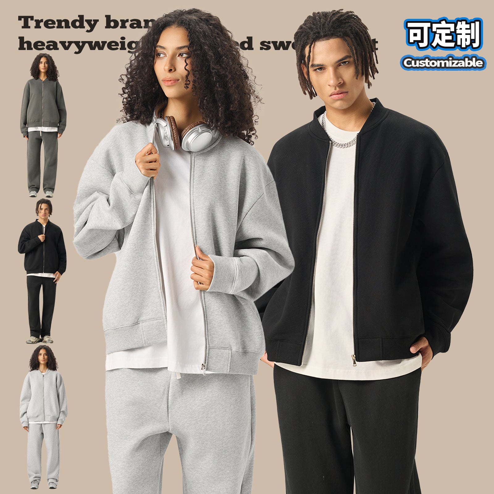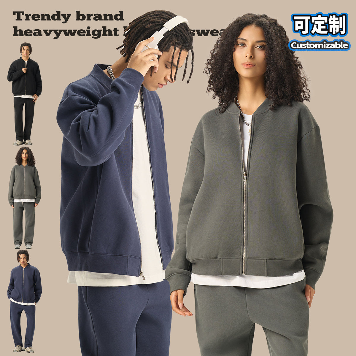 Old Money Style Men’s Baseball Zipper Jacket – Fleece 350g