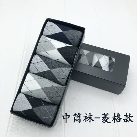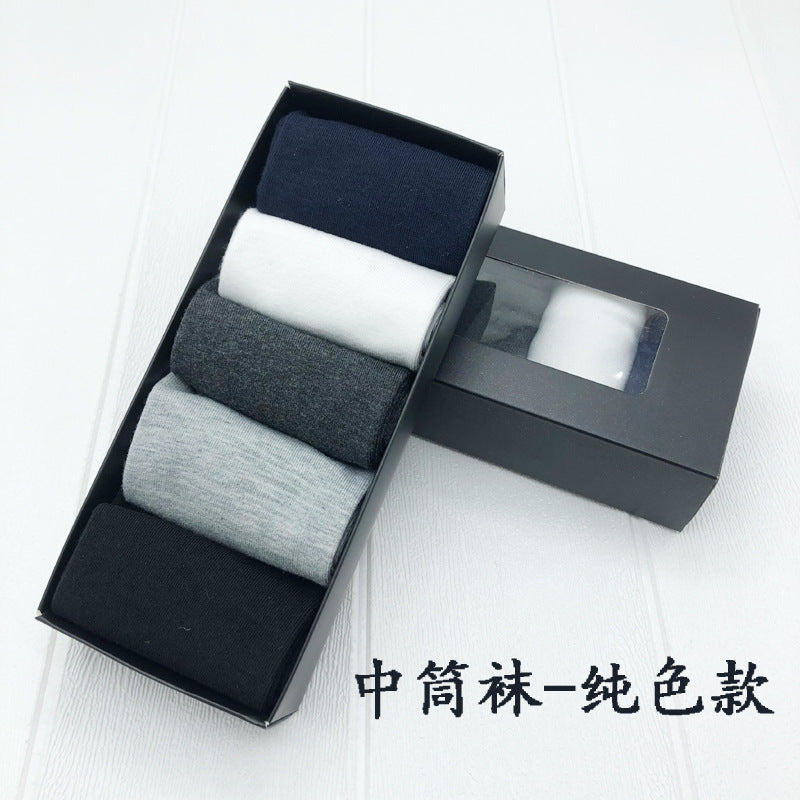 Solid Cotton Mens Socks Gift Box ā 5 Pair Business Style