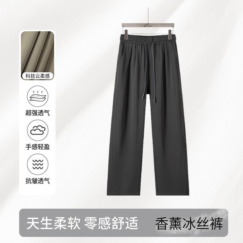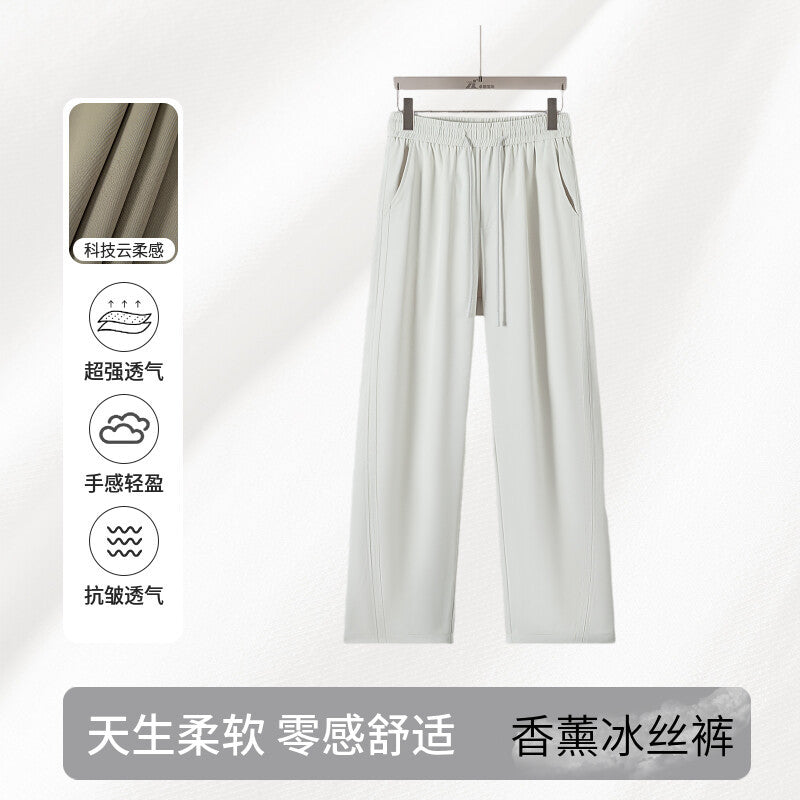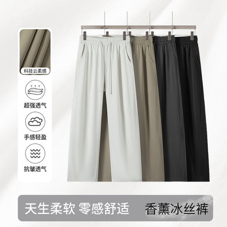 Men’s Ice Silk Summer Pants – Thin Wide-Leg Casual Trousers