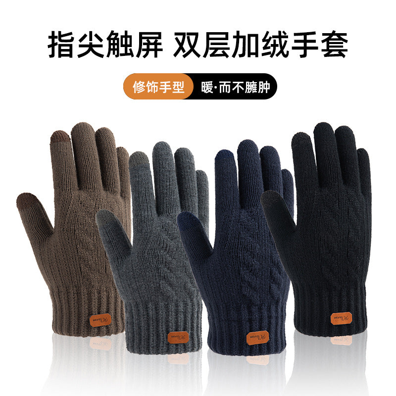Men’s Touch Screen Knitted Winter Gloves Warm Fleece