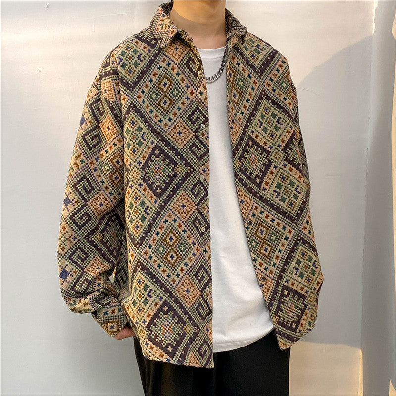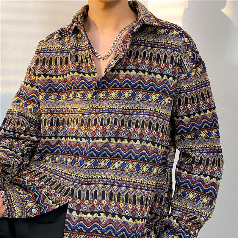 Vintage Baroque Men’s Overshirt Retro Ethnic Jacket