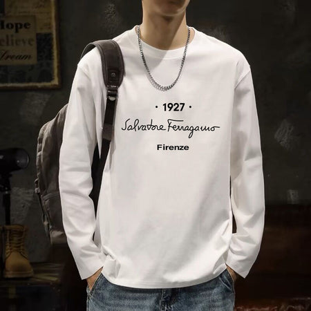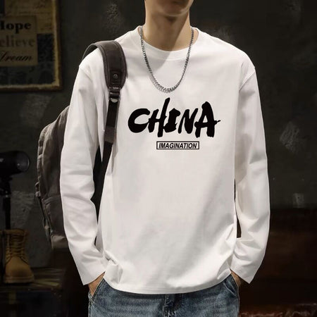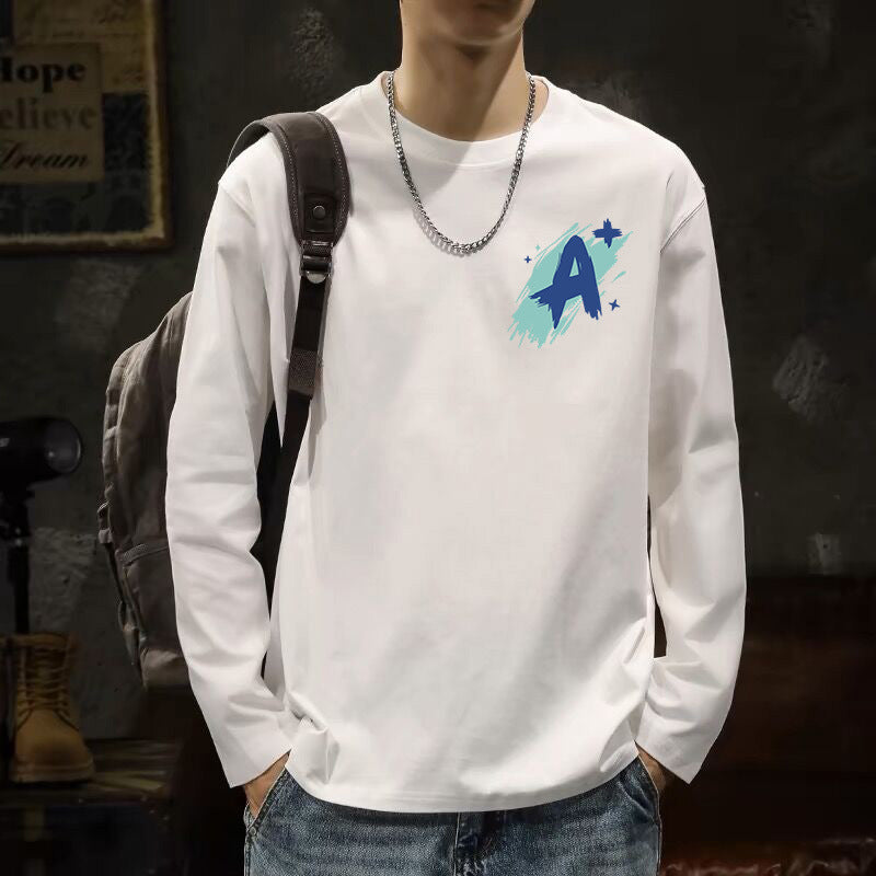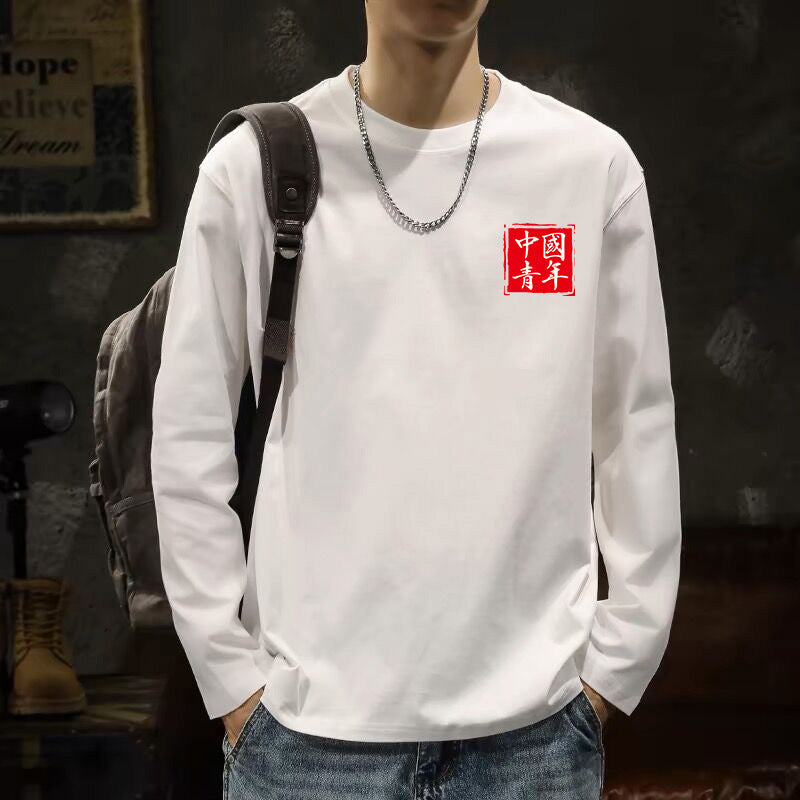 Men’s White Cotton Long Sleeve Korean Style T-Shirt