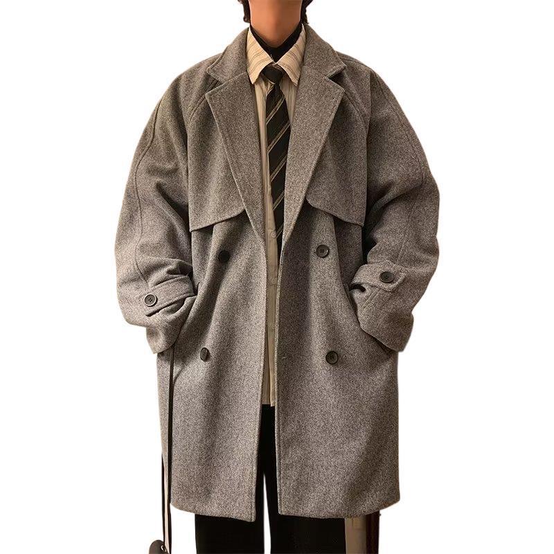 Stay warm and stylish this season with this men’s double-breasted mid-length woolen coat, designed for autumn and winter wear. Its loose long coat silhouette offers comfort and layered warmth for daily life or business casual outings.