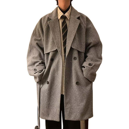 Men’s Mid-Length Wool Coat – Double-Breasted Winter Windbreaker