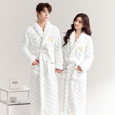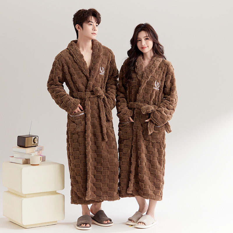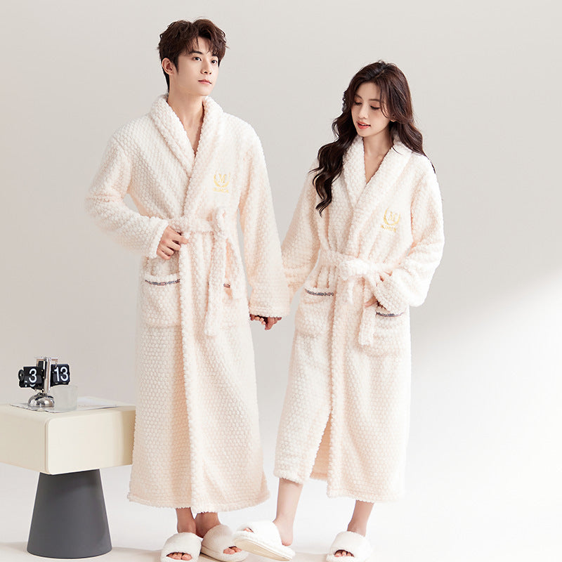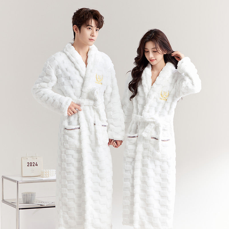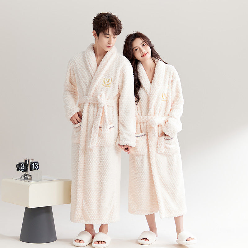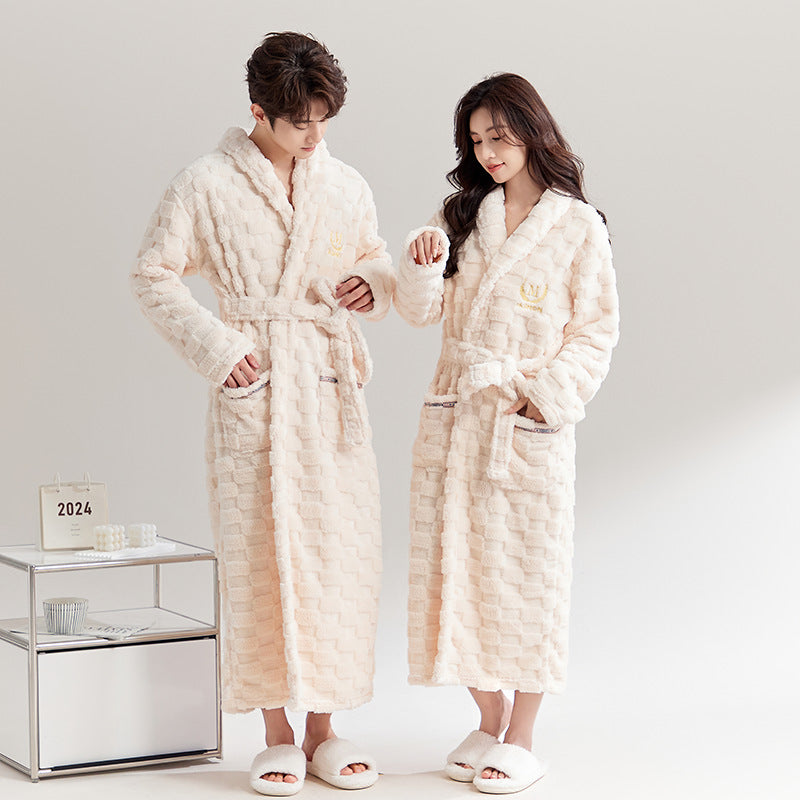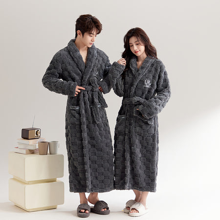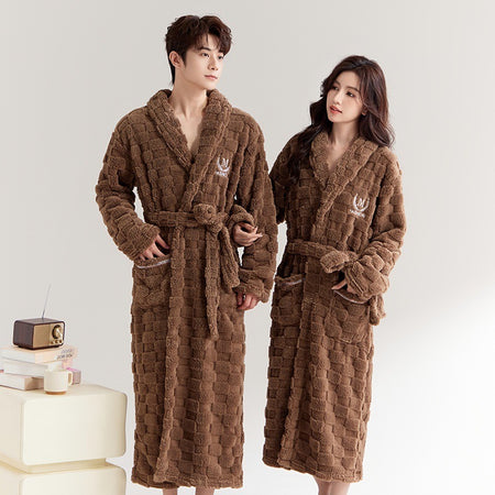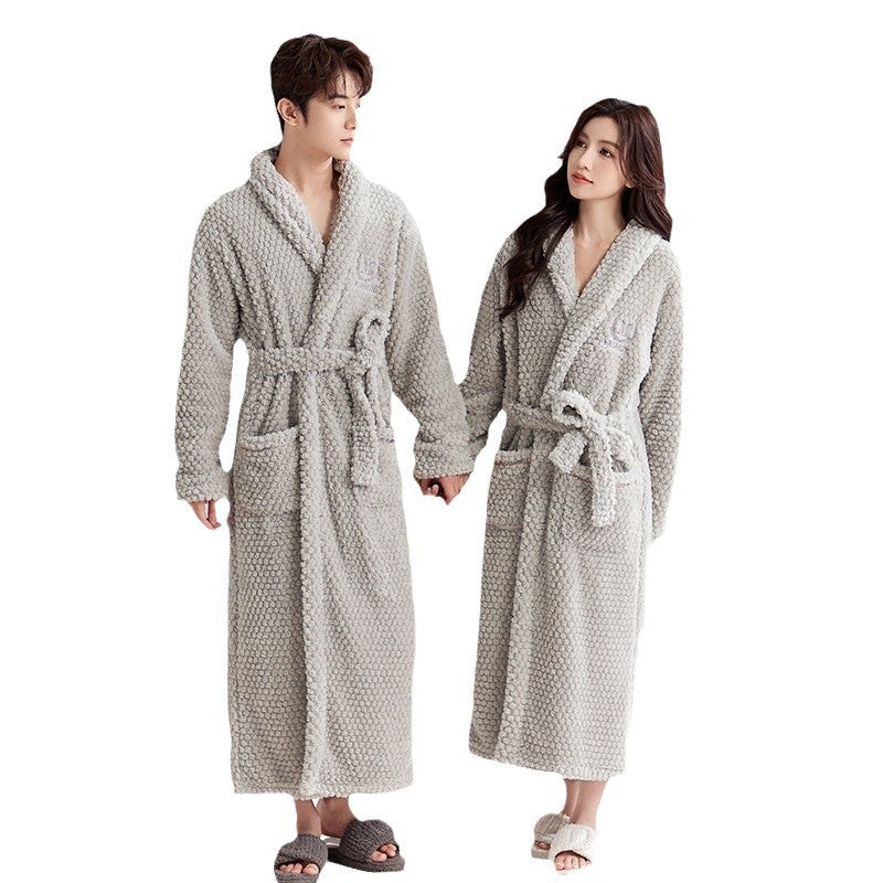 Winter Coral Fleece Bathrobe – Thick Flannel Nightgown for Men & Women