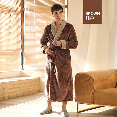 Winter Flannel Bathrobe – Plus Size Thick Coral Fleece Nightgown for Men & Women