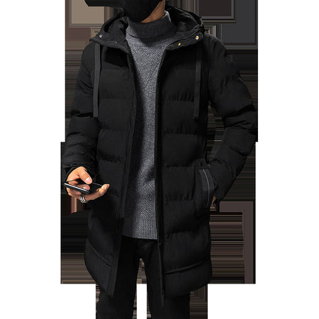 Men’s Mid-Length Cotton-Padded Jacket – Thick Hooded Winter Coat