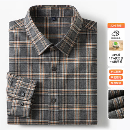 Experience the perfect blend of soft wool and breathable cotton in this long sleeve plaid shirt. Designed for autumn and winter, this shirt is brushed for added warmth and comfort while maintaining a casual, versatile style suitable for multiple occasions. 🌿