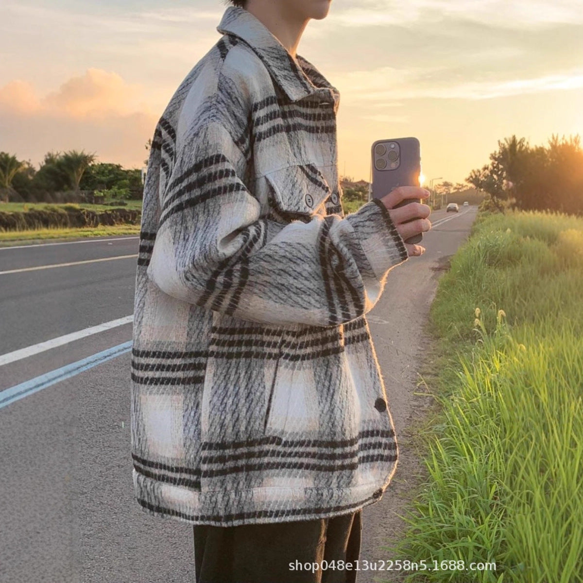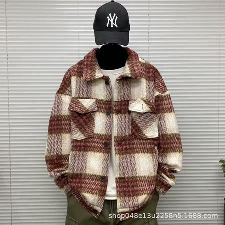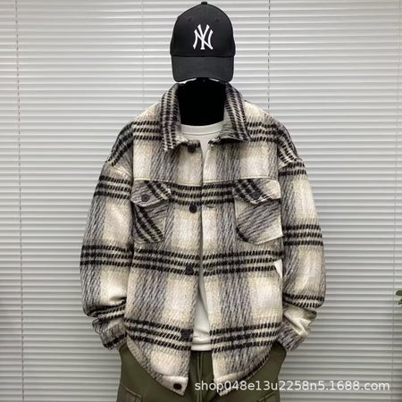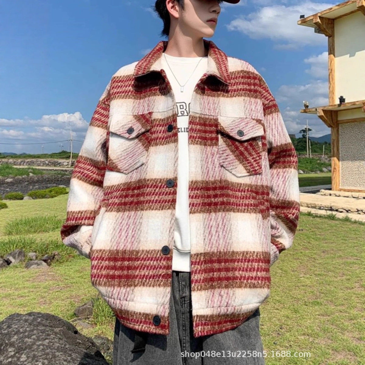 Woolen Plaid Overshirt Men’s Korean Street Style Jacket