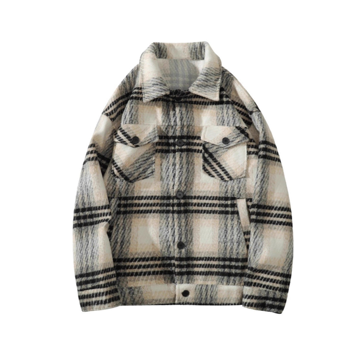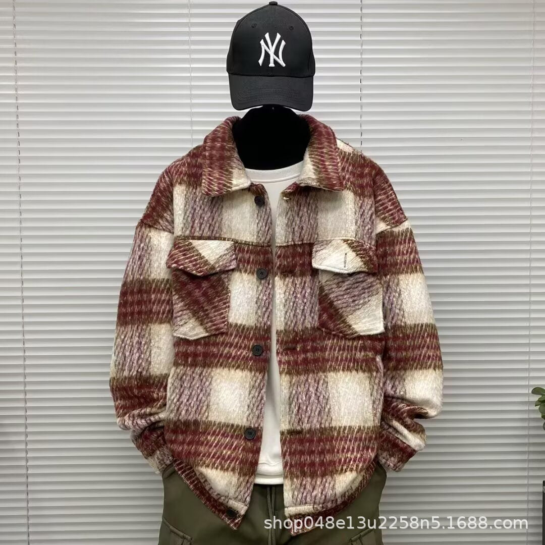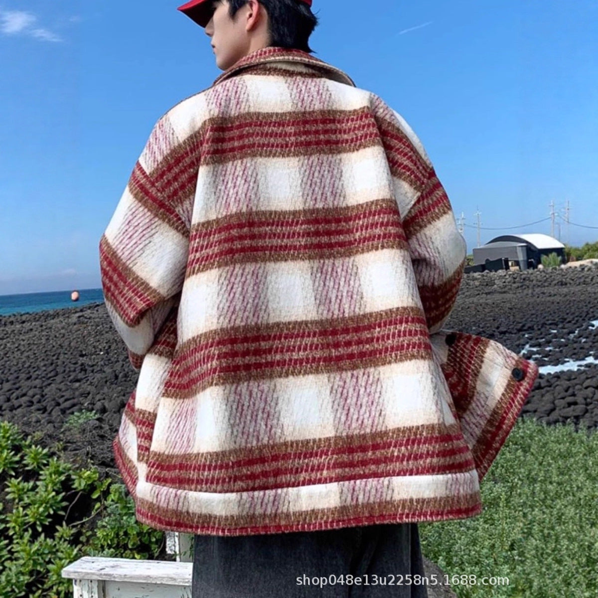 Woolen Plaid Overshirt Men’s Korean Street Style Jacket