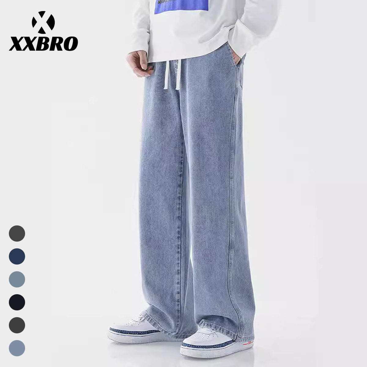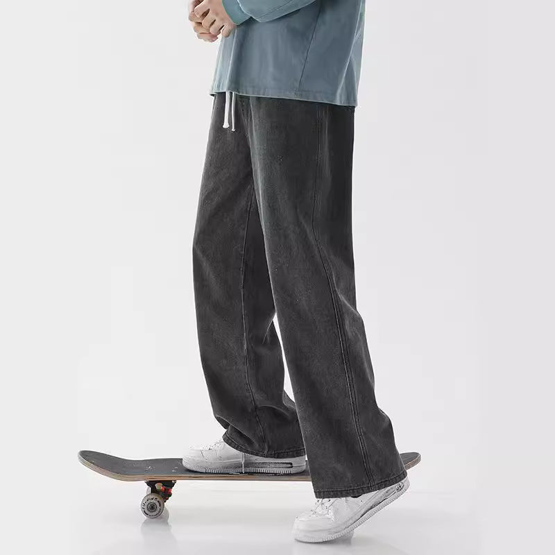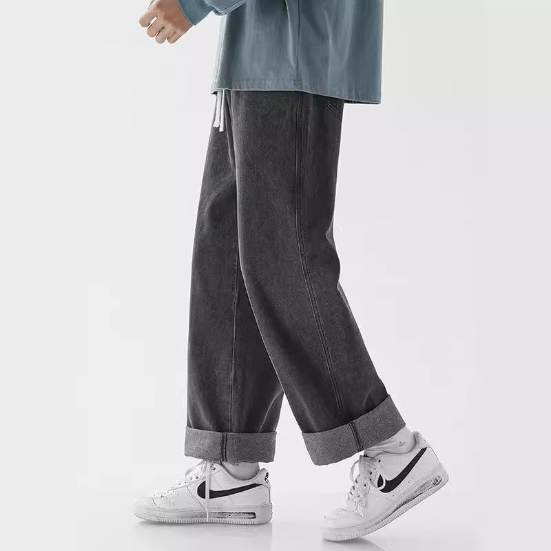 Men’s Washed Straight-Leg Jeans – Xxbro Wide Loose Pants
