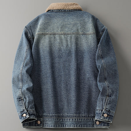 Yuan Yue Men’s Denim Jacket | Winter Fleece-Lined Fur Collar Coat
