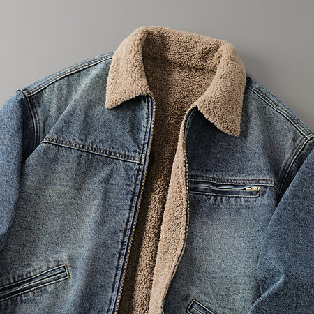 Upgrade your winter wardrobe with the Yuan Yue Lamb Wool Denim Jacket—a thickened, fleece-lined, and stylish coat that keeps men warm and fashionable all season. Order yours today and embrace modern winter street style!